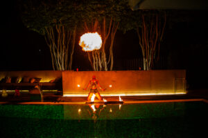 Eine spektakuläre Feuershow wartet auf dich und deine Gäste.